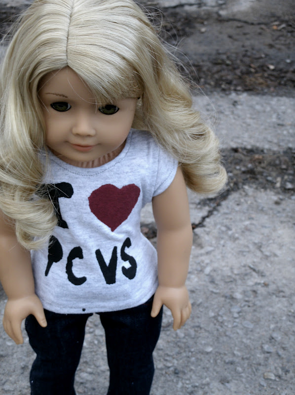 This is my tee shirt, that I made for a birthday gift I'm sending out to a friend. I'm really excited about how well it turned out! I just felt like showing it to you before I sent it off, but if you wanna see more pics, I'll be uploading a video to my YouTube of a photoshoot, which will have lots of 'em. If you want to know about the whole 'I heart PCVS' business, you can google 'save pcvs' to get the full story. I've explained this so many times, and I feel like I always explain it wrong! The jist of it, is that there's a school closing in our area and the shirt is part of a protest to save it :)